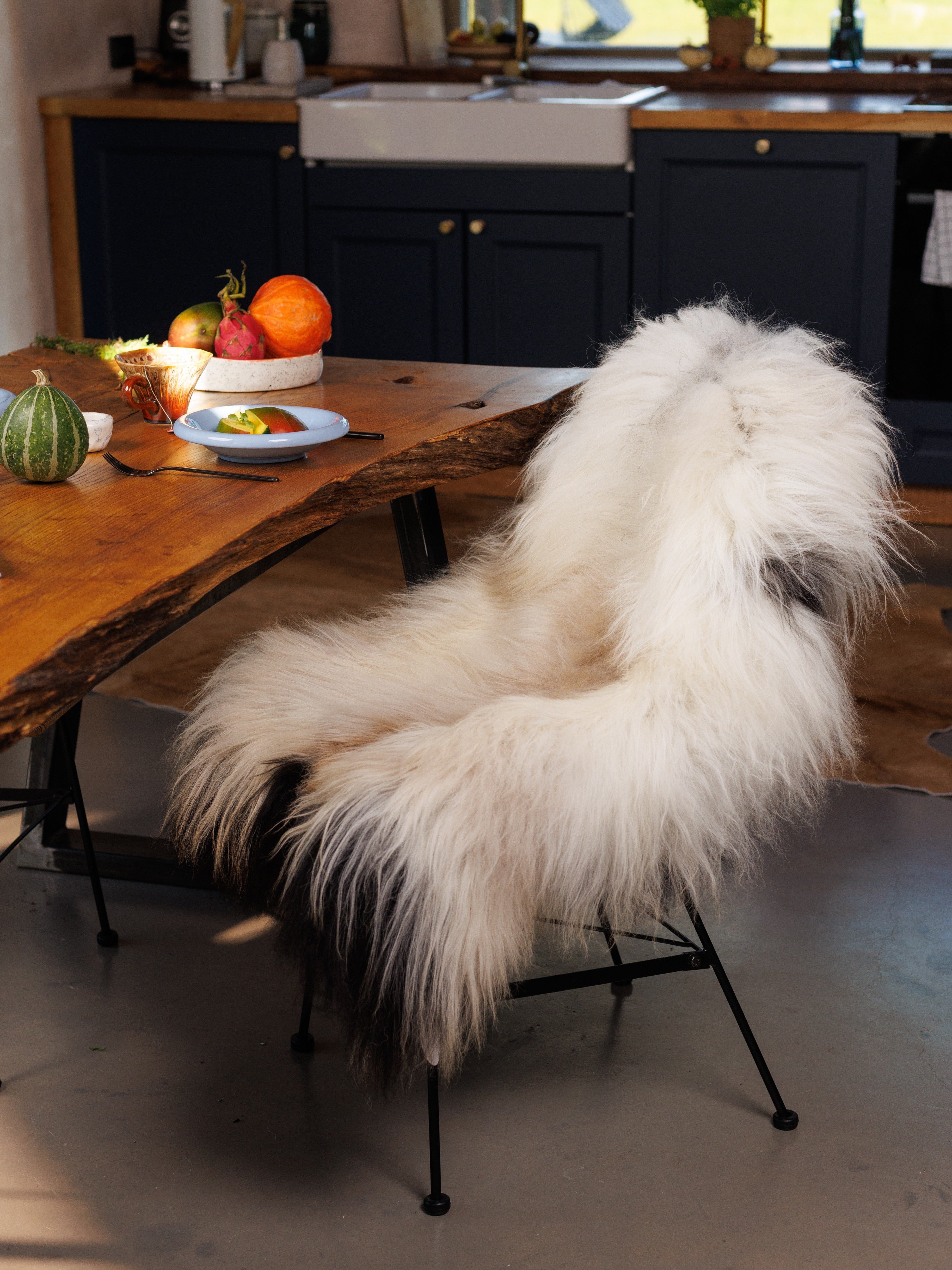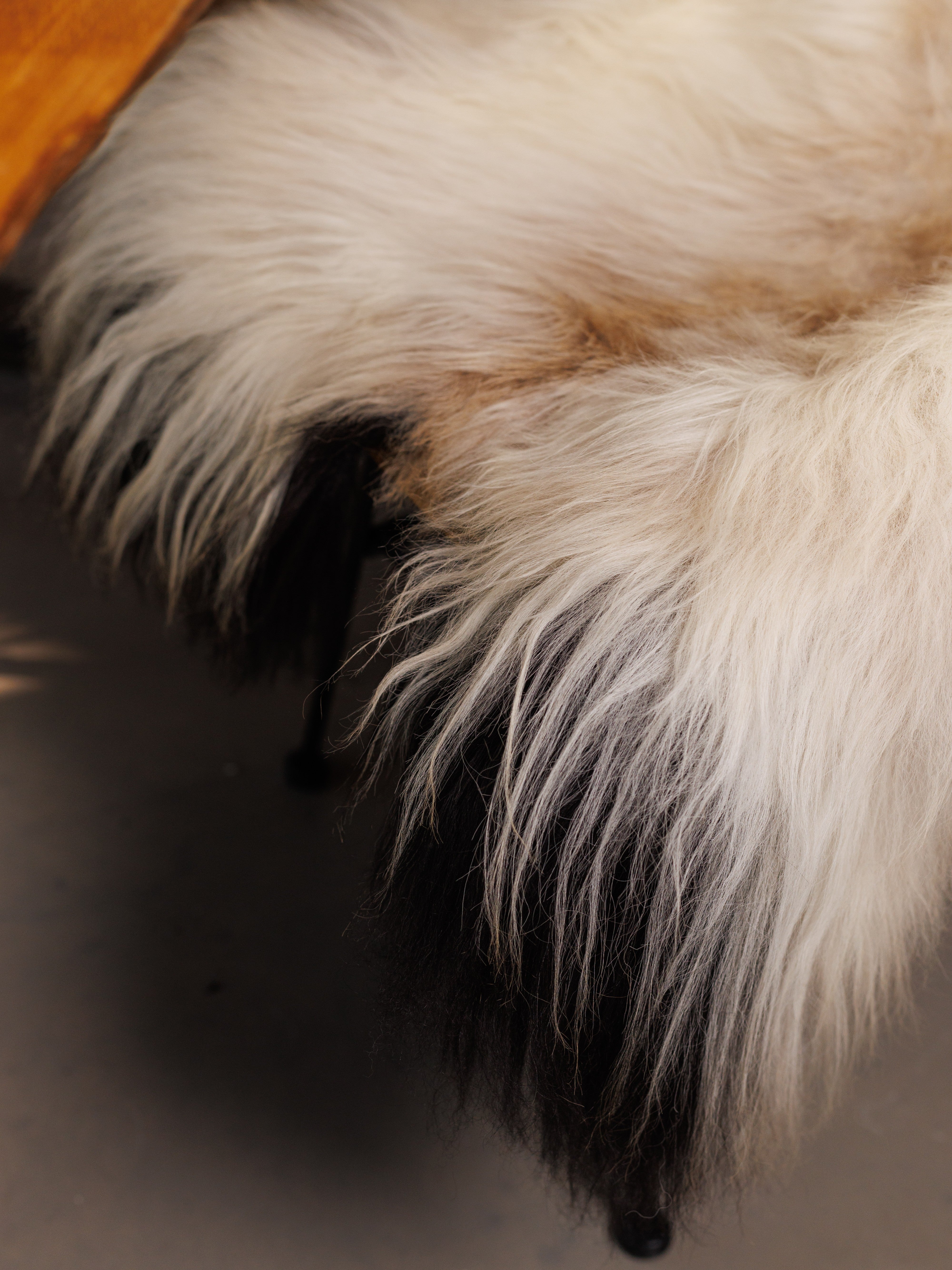 Isländsk fårskinnspäls är av förstklassig kvalitet — stark, vattentålig, hållbar och glansig. Pälsen är längre än vanligt fårskinn och kan bli upp till 20 cm.