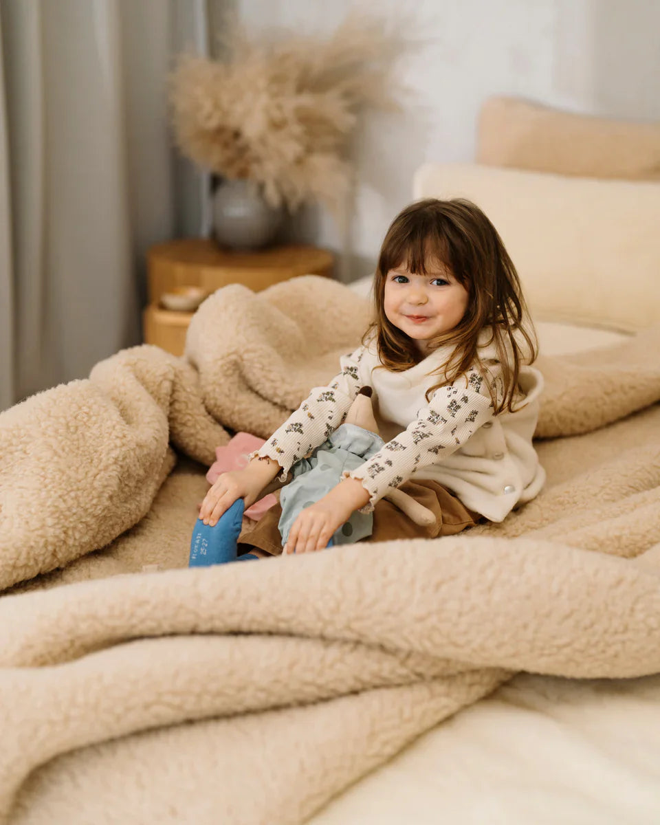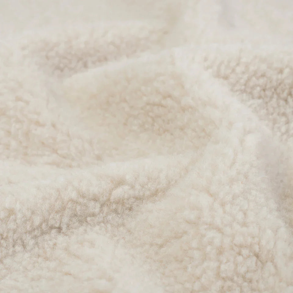 Äkta ull åldras vackert. Tvålagers-konstruktionen ger Nut-filten extra fyllighet och värme, samtidigt som den behåller ullens naturliga andningsförmåga. Till skillnad från syntetfibrer håller den formen, blir mjukare med tiden och erbjuder ett djup av komfort som varar i många år.